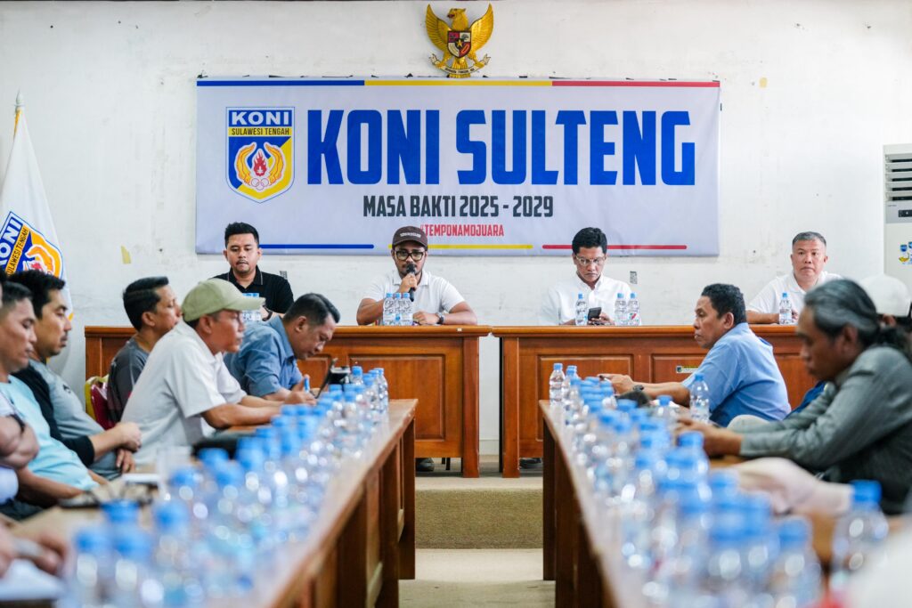 Agenda, Rilis Terkini Rapat Kerja KONI Sulteng yang dipimpin langsung oleh Ketua Umum Muhammad Fathur Razaq dan dihadiri pengurus KONI Sulteng January 16, 2026 25 Desember 2025Rapat Kerja KONI Sulteng yang dipimpin langsung oleh Ketua Umum Muhammad Fathur Razaq dan dihadiri pengurus KONI Sulteng📍 Kantor Koni Sulawesi Tengah, Kota Palu Rilis Artikel Lainnya KONI Sulteng Kunjungi SMANOR dan PPLP KONI Sulteng Paparkan Target Pembinaan Cabang Olahraga 2026 dalam Dialog Interaktif RRI Palu Open Tournament Sport Climbing Competition Berani Cup I